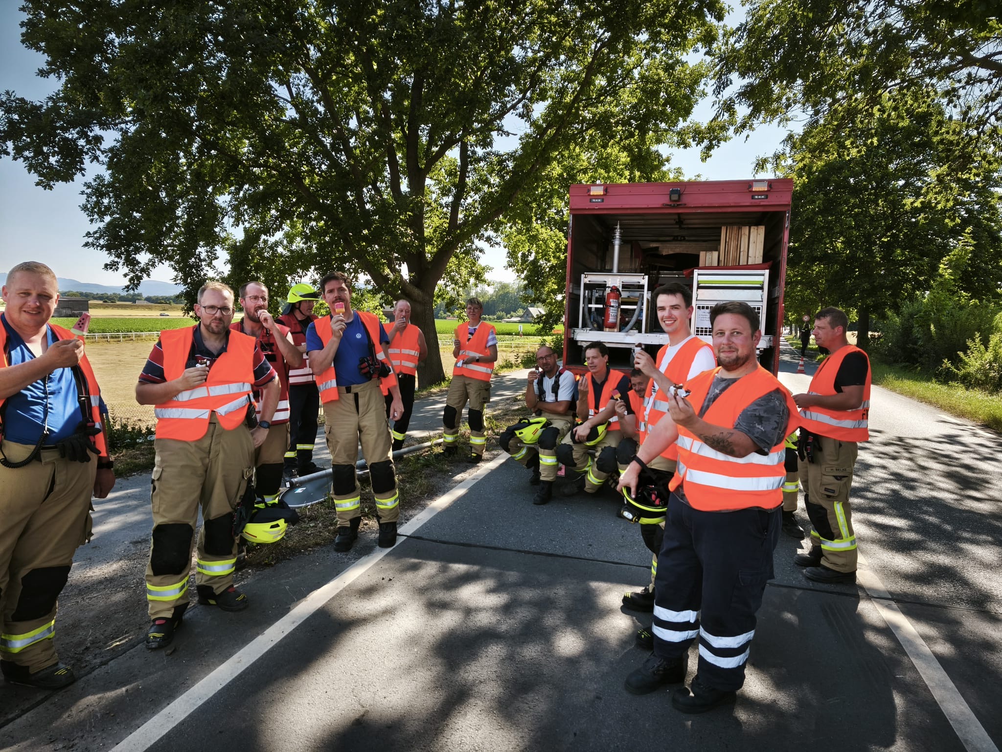 Besonders erwähnenswert ist, dass die Einsatzkräfte bei den hochsommerlichen Temperaturen von Anwohnern mit Eis versorgt wurden. Dafür ein herzliches Dankeschön.