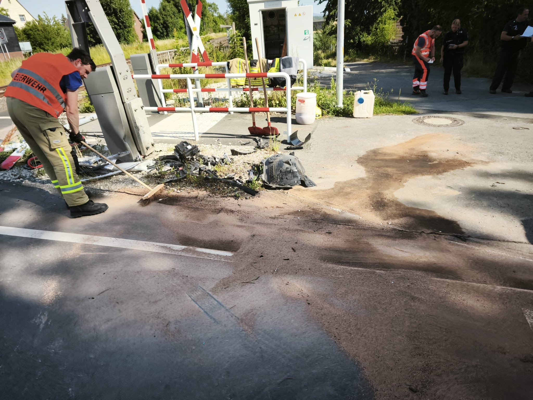 Nachdem das Unfallfahrzeug abgeschleppt war, konnte die Einsatzstelle an den Notfallmanager der deutschen Bahn übergeben werden. Einsatzende für die Feuerwehr nach etwa 90 Minuten.