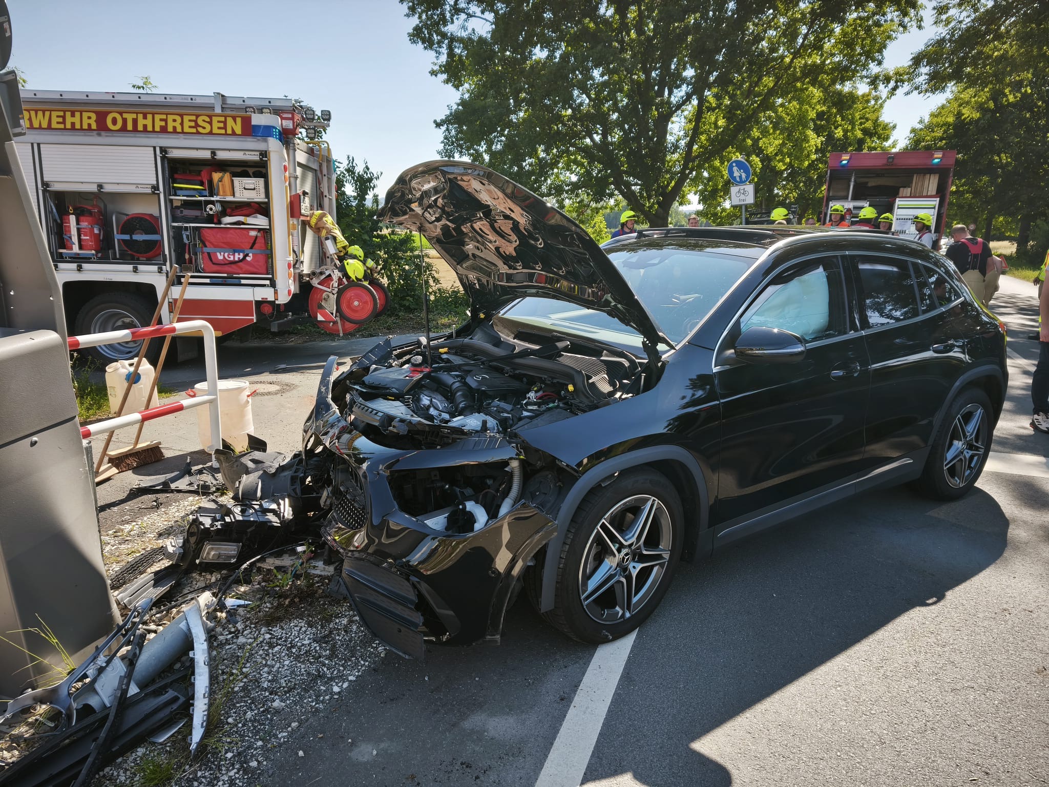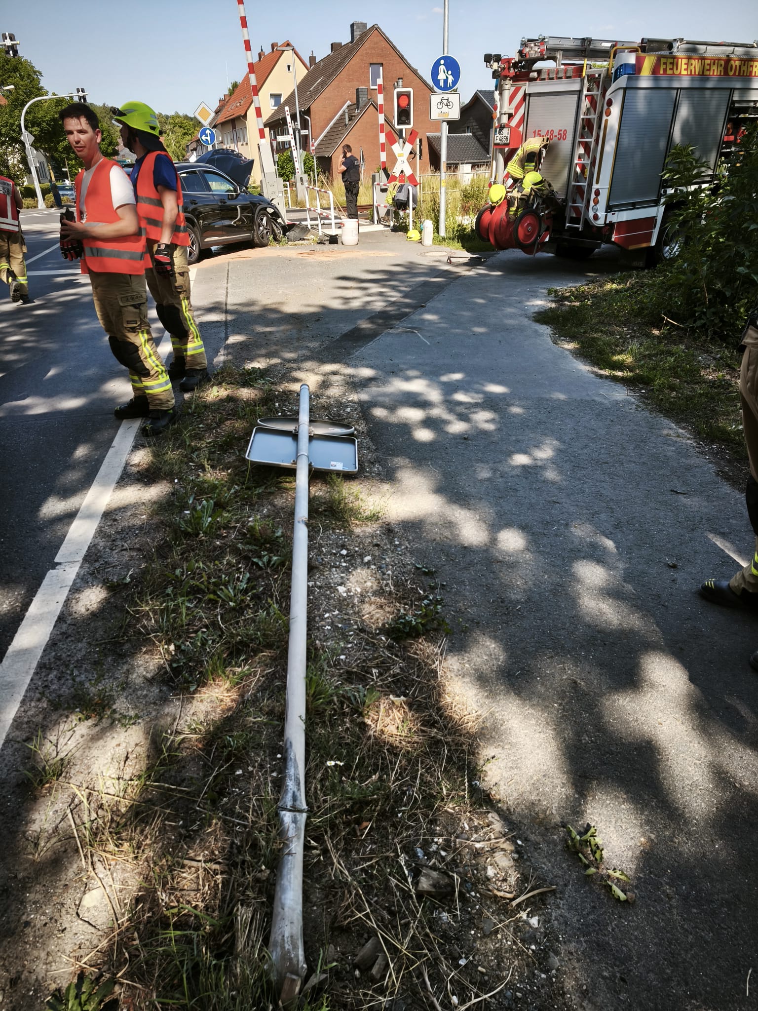 Einsatz-Nr. 26/2025Zu einem Verkehrsunfall mit einer verletzten Person wurde die Feuerwehr Othfresen gemeinsam mit dem Rettungsdienst und der Polizei an den Bahnübergang Hauptstraße / Luttersche Straße alarmiert. Aus ungeklärter Ursache überfuhr ein Mercedes PKW erst ein Straßenschild und kollidierte dann mit einem Schrankenmast. Der Fahrer erlitt dabei Verletzungen, war aber nicht im Fahrzeug eingeklemmt.
